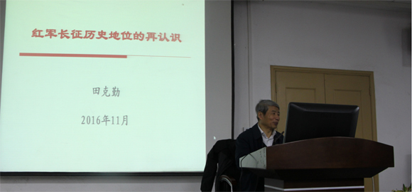 应学院邀请,东北师范大学田克勤教授做客我院第九期研究生学术论坛,于11月3日下午在格致楼1001报告厅为师生做了题为《红军长征历史地位的再认识》主题报告。报告会由副院长杨宏伟教授主持,百余名师生聆听了报告。