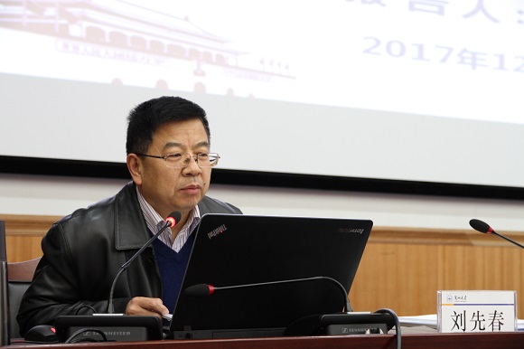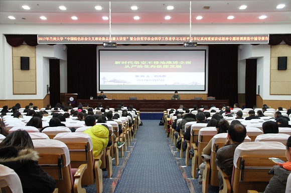 为帮助广大师生全面准确理解全面从严治党的丰富内涵和重大意义,12月15日晚,由党委宣传部、研工部、学工部、马克思主义学院主办的2017年兰州大学“中国特色社会主义理论热点问题大讲堂”第九讲在飞云楼报告厅举行,本场讲座也是全校“哲学社会科学工作者学习习近平总书记系列重要讲话精神专题培训班”第三场集中辅导报告。马克思主义学院教授、博士生导师刘先春应邀作了《新时代坚定不移地推进全面从严治党向纵深发展》的主题报告。全校哲学社会科学工作者代表和马克思主义学院师生400余人参加了此次报告会,报告会由学院副院长杨宏伟教授主持。